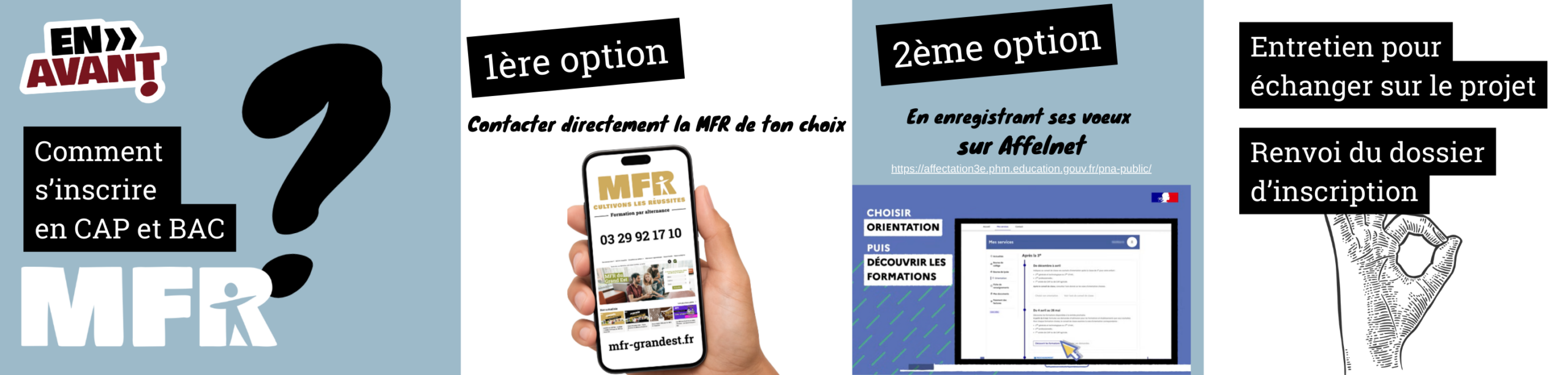 - Une prise de contact directe avec la MFR permet d’obtenir toutes les informations sur les contenus de formation, l’alternance et les débouchés.